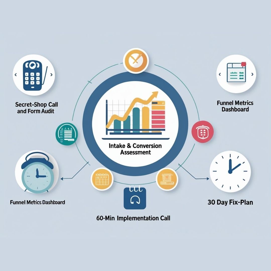 Designed to combat low inquiry-to-client conversion and intake bottlenecks. This assessment includes: